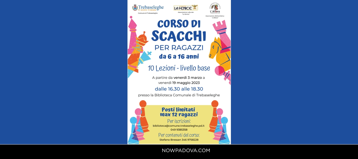 Approvato in Giunta il 31 gennaio, partirà il 3 marzo per terminare a maggio il nuovo corso di scacchi che si terrà in biblioteca comunale. L'anno scorso era stato fatto un laboratorio di avvio agli scacchi per i ragazzi, limitato al periodo natalizio, che ha avuto un buon riscontro e ha convinto l’amministrazione a proporre quest’anno un corso vero e proprio, completo, tenuto da un istruttore. Il corso è composto da 10 lezioni, il venerdì dalle 16.30 alle 18.30 presso la biblioteca comunale di Trebaseleghe, da marzo a maggio; il calendario verrà consegnato ai partecipanti. Il corso è dedicato ai ragazzi dai 6 ai 16 anni, fino a un massimo di 12 partecipanti, è gratuito grazie al contributo del Comune, che lo patrocina. Le associazioni che lo organizzano sono La Fenice di Trebaseleghe e L’Alfiere di Santa Maria di Sala, utilizzando scacchiera gigante murale e scacchiere da tavolo. Si tratterà di un corso con modalità interattiva, particolarmente coinvolgente per i ragazzi. Gli obiettivi sono conoscere le basi del gioco degli scacchi, diffondere la cultura dello stare insieme e collaborare, creare un ambiente in cui la partita e la scacchiera diventano uno spazio per imparare qualcosa di nuovo e stimolante per la mente dei ragazzi. Alle lezioni potrà essere presente, come spettatore e aiutante, anche qualche genitore. “Ci abbiamo lavorato tutto quest’anno ed ecco che il corso parte. Gli scacchi sono da sempre considerati un gioco che allena la strategia, la disciplina, la capacità di calcolo, la pazienza e altri aspetti che possiamo racchiudere nella sfera logica matematica – spiega la consigliera delegata Rosa Chiara Casarin - Le lezioni programmate saranno per i partecipanti un'opportunità di crescita sia a livello educativo che formativo. Sono molto felice di questo corso e ringrazio le associazioni che si sono spese per sostenerlo. In tempi sempre più digitali e veloci, questo gioco, che impiega un tempo lento e riflessivo, credo sia un’ottima cosa per i ragazzi, per la formazione della loro personalità e il loro domani”.