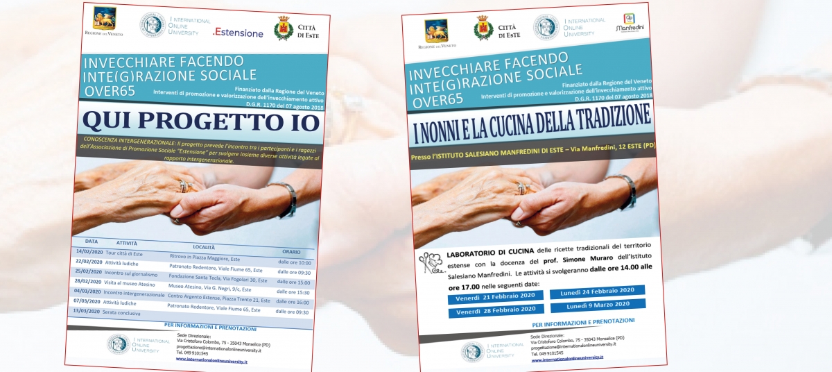 Il laboratorio di cucina curato dal professor Simone Muraro si terrà presso l'Istituto Salesiano Manfredini nei pomeriggi del 21, 24, 28 febbraio e 9 marzo. Tutte le attività sono gratuite previa iscrizione contattando International Online University (capofila del progetto) allo 049 9101545 o tramite email Questo indirizzo email è protetto dagli spambots. È necessario abilitare JavaScript per vederlo.. Il progetto di promozione dell'invecchiamento, al quale partecipano ben 12 partner e che è finanziato dalla Regione Veneto, ha già permesso di attivare numerosi servizi, consulenze gratuite e attività di socializzazione per un totale di 520 ore erogate da personale qualificato. Si tratta di servizi come l'assistenza domiciliare per il disbrigo di pratiche quotidiane e la cura della persona; il supporto alla socializzazione e i laboratori ludico-ricreativi;lo sportello informativo presso il Centro Argento Estense; i corsi di alfabetizzazione digitale e di storia e cultura locale. A breve sarà pronto il "decalogo contro gli abusi agli anziani" frutto dell'incontro tenutosi l'11 dicembre 2019 su "Truffe e raggiri" al quale sono intervenuti il Comando dei Carabinieri di Este e quello della Polizia Locale.