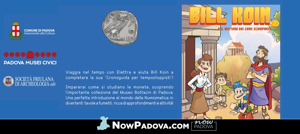 Sabato 1° giugno al Museo Bottacin, Palazzo Zuckermann. Sarà in distribuzione dal mese di giugno “Bill Koin e il mistero dei conii scomparsi”, secondo numero della collana di fumetto “Bill Koin. Alla scoperta della numismatica. La numismatica a fumetti”, ideata dal Museo Bottacin in partenariato con la Società Friulana di Archeologia. In occasione del lancio della pubblicazione il Museo Bottacin invita i ragazzi dagli 8 ai 14 anni a prendere parte sabato 1 giugno ad un laboratorio speciale, che sarà occasione di conoscere l’autrice e il disegnatore della serie a fumetti e sperimentare i segreti della produzione delle monete con la tecnica del conio. Ai partecipanti verrà regalato in anteprima il fumetto “Bill Koin e il mistero dei conii scomparsi”. La partecipazione è gratuita con prenotazione obbligatoria al sito www.padovamusei.it. La serie a fumetti, prodotta dai Musei Civici, si propone di avvicinare cittadini e studenti di ogni età alla collezione numismatica del Museo Bottacin affidandone il racconto ad un viaggiatore del tempo, appunto Bill Koin, che nel corso delle sue avventure introduce il lettore alla storia delle monete, delle medaglie e dei pezzi più interessanti della collezione Bottacin. “Siamo contenti di proporre al pubblico il secondo numero del fumetto che racconta le avventure di Bill Koin poiché questo personaggio, nato dalla matita dell’illustratore Federico Gardin grazie ai testi della esperta in numismatica Gaia Mazzolo, è diventato già un beniamino del nostro pubblico e di sicuro è il miglior testimonial per la preziosa collezione del museo Bottacin.” - dice il direttore dei Musei Civici di Padova, Francesca Veronese. “Quando parliamo di numismatica pensiamo a un passatempo legato più al passato che al mondo contemporaneo, – fa eco l’assessore alla cultura – mentre i fumetti, insieme alle graphic novel sono tra i linguaggi più amati dai giovani anche fra i così detti nativi digitali. E’ quindi interessante constatare come il fumetto  possa raccontare la collezione numismatica del Museo Bottacin, e attraverso le monete  che hanno appassionato generazioni diverse di pubblico  anche la storia del nostro territorio". “La serie a fumetti vuole avvicinare studenti e cittadini di ogni età, in maniera inedita, attiva e coinvolgente, al mondo della Numismatica e alla collezione del Museo Bottacin di Padova. - spiega Federico Gardin - In questo secondo episodio ci siamo divertiti a catapultare il protagonista, e con lui i lettori, in una rocambolesca avventura ambientata tra l’antica Grecia e lo spazio intergalattico nel tentativo di salvare la storia della moneta.” “L’entusiasmo suscitato nel pubblico dal primo numero della serie ci ha spinti ha voler ideare nuove avventure per i nostri beniamini - dice Gaia Mazzolo - mescolando intrattenimento e divulgazione, per permettere ai lettori di ogni età di imparare divertendosi.”  “Leggere la storia delle monete grazie ad un fumetto, mettendosi nei panni di un nuovo eroe può farci entrare in una relazione diversa con le monete che usiamo oggi e con i reperti che fanno parte della storia, dell’evoluzione stessa della nostra vita e conoscenza. - conclude Valeria Vettorato, conservatore del Museo Bottacin - Coltivare la passione per il nostro passato può aiutarci a comprendere in modo maggiormente consapevole la nostra quotidianità. Il fumetto ci rende più curiosi ed attenti rispetto agli oggetti preziosi che tutti i giorni portiamo nelle nostre tasche.”