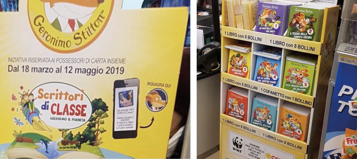Fumetti al supermercato? Non sembra una novità visto che già ci sono i gli scaffali dei libri. La curiosità è che si tratta della collezione "Scrittori di classe" ovvero la serie di racconti è stata scritta dagli alunni delle scuole elementari e medie italiane. Al concorso promosso da Conad, WWF che ha visto la collaborazione di "Geronimo Stilton" come testimonial dell'operazione hanno aderito 25mila classi e più di 6mila lavori consegnati. Risultato: 8 racconti sulla difesa dell'ambiente firmati dai piccoli talenti in vendita nei punti del gruppo distributivo. Il topo giornalista ha tenuto a battesimo il primo testo dedicato ai pippistrelli come specie da proteggere, ma nella collana di parla di mare e spiagge da pulire, foreste da tutelare, risorse energetiche da non sprecare. Grafica Veneta ci ha messo lo zampino e con la casa editrice Piemme ha stampato tutte le copie, in totale riservatezza trattando gli autori come i grandi artisti della letteratura che impongono il silenzio su copertine e contenuti. "Possiamo dire che andare a far la spesa - commenta il presidente Fabio Franceschi - è un gesto culturale se le famiglie compreranno anche qualche opera realizzata dai più piccoli. Aiuteranno la natura e soprattutto il progetto di migliorare il pianeta promosso anche nelle oasi che possono trasformarsi in laboratori per la sperimentazione delle buone pratiche ecologiche in agricoltura".